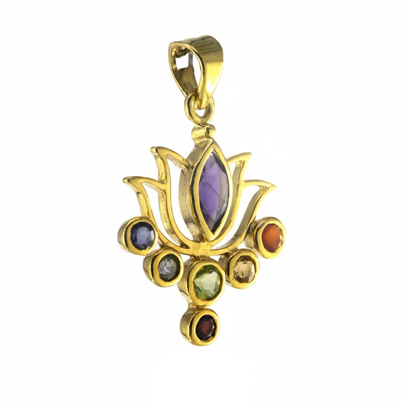 Lotus-Anhänger mit 7 Chakra-Steinen