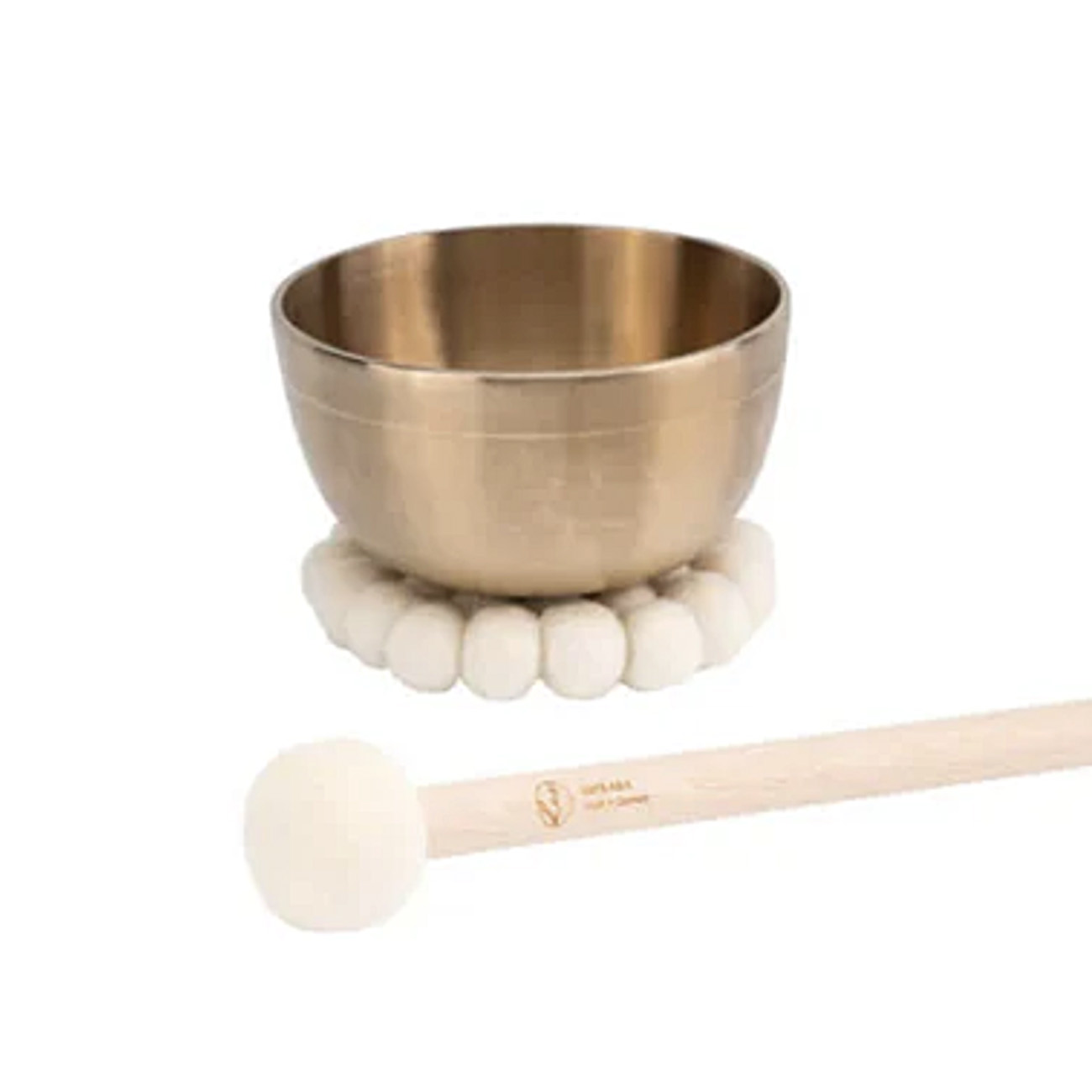 Unser Tiny Bowl Set enthält alles, was du brauchst, um sofort loszulegen: die Tiny Bowl Klangschale, einen Filzuntersetzer und einen Filzschlägel. Mit der veganen Variante bieten wir auch einen veganen Minifilzuntersetzer und den pure line 15 Schlägel an, damit jeder seine persönliche Klangreise genießen kann.